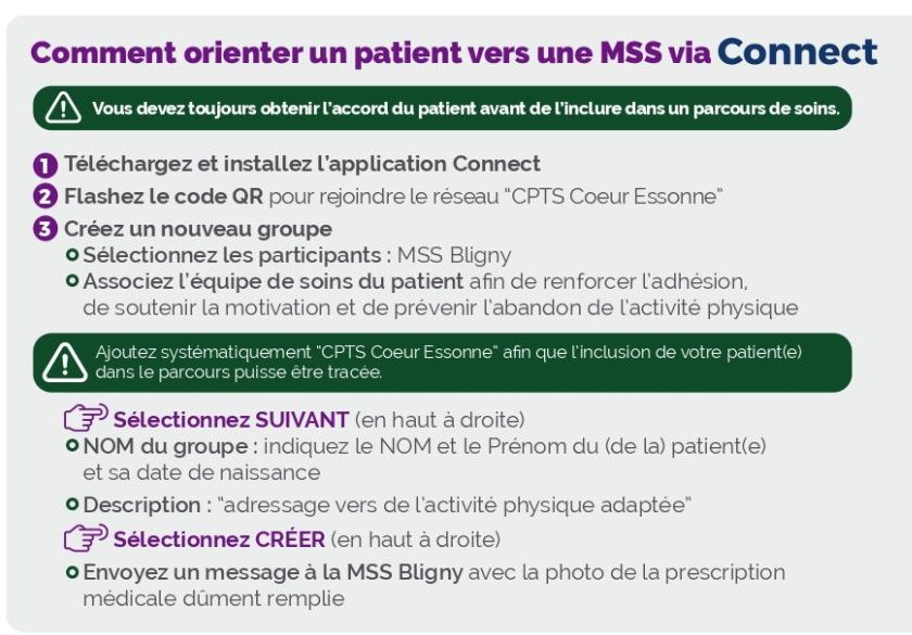 Pour y remédier, la CPTS Cœur Essonne met en place un parcours d’activité physique adaptée (APA) sur le territoire, afin que chaque professionnel·le puisse orienter facilement ses patient·e·s vers une solution appropriée, sécurisée et accessible.