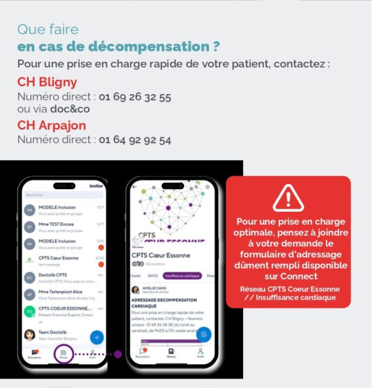 En cas de décompensation, le parcours insuffisance cardiaque prévoit une prise en charge rapide, en lien direct avec les établissements partenaires.