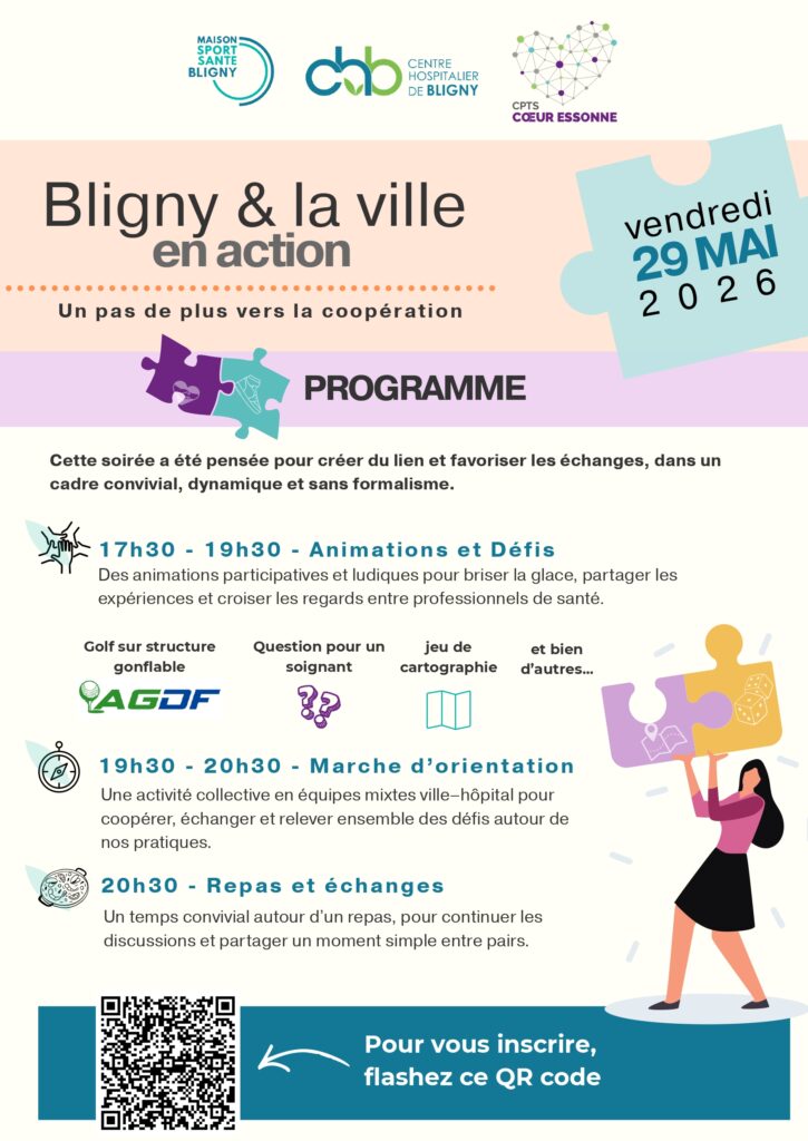 Le vendredi 29 mai, la CPTS CĆur Essonne et le Centre Hospitalier de Bligny vous embarquent dans un Ă©vĂ©nement inĂ©dit pour casser les codes et faire tomber les frontiĂšres entre la ville et lâhĂŽpital.